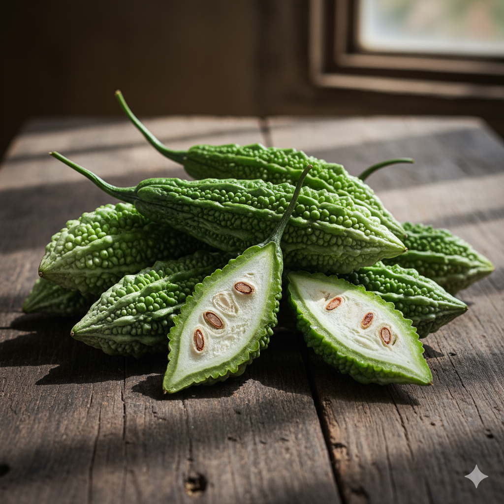 Naturally cultivated karela, packed with nutrients and known for its authentic bitter flavor.