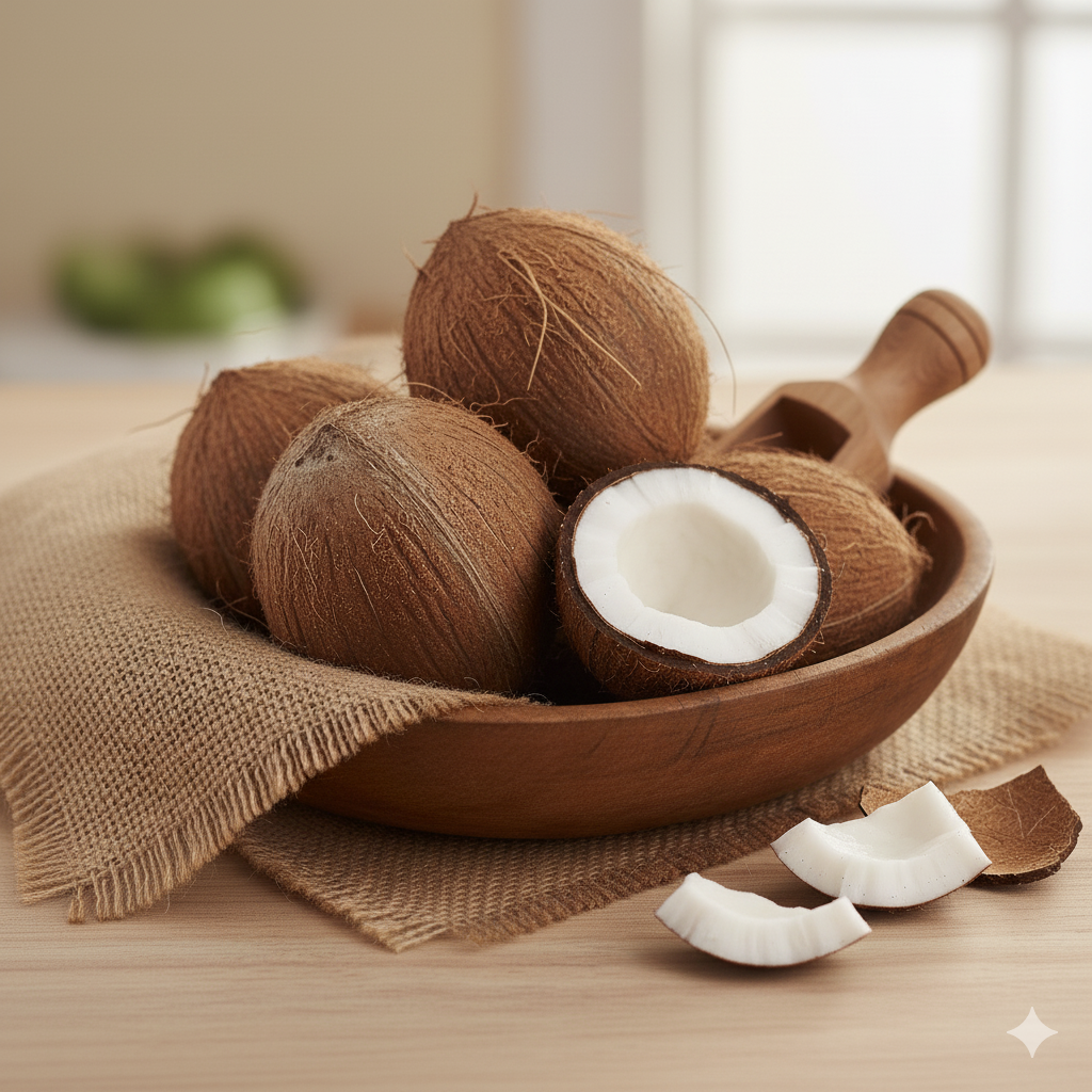 Fresh, sun-dried coconuts — naturally processed to retain sweetness and purity.