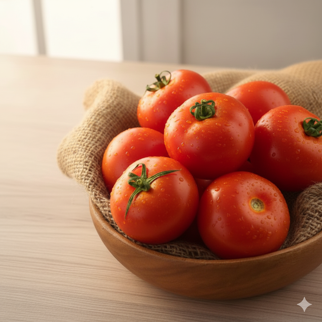 Juicy, farm-fresh tomatoes, cultivated organically for vibrant color and authentic taste.